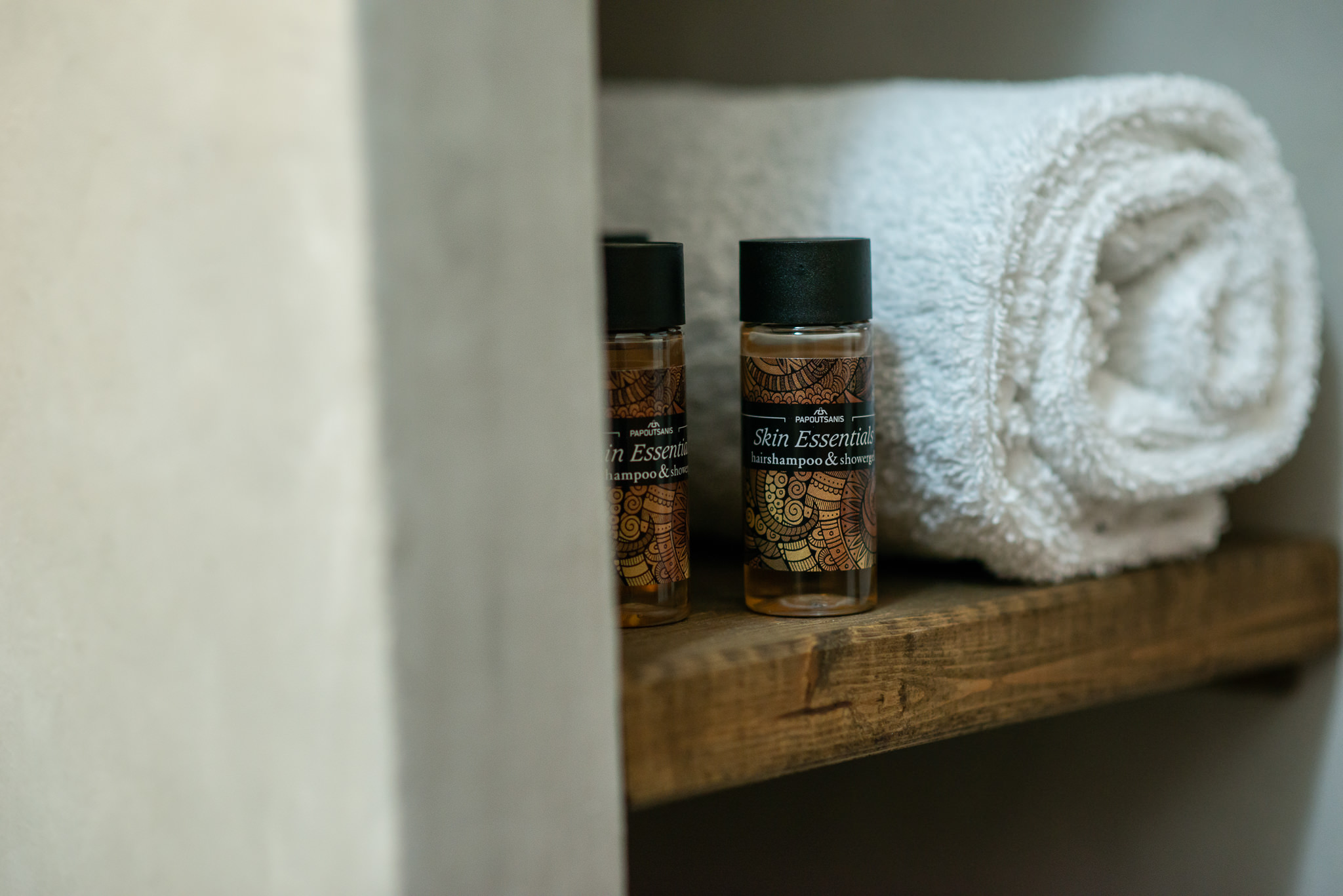 Τα δωμάτια προσφέρουν ευρύχωρες βεράντες ή αίθριες περιοχές με εκπληκτική θέα, όπου μπορείτε να απολαύσετε τα γεύματά σας υπό τον αιγαιοπελαγίτικο ήλιο ή τον αστερόφωτο ουρανό της Σκύρου